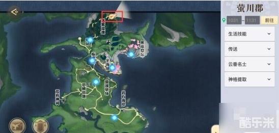点击萤川郡地图,直接点击迷雾湿地右上方,坐标(萤川郡1031,1131),建议直接鼠标点击地点,不要输入坐标,坐标可能会有偏差