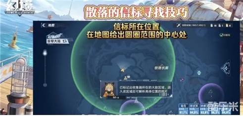 这里需要用到一个信标寻找的技巧了,想要快速找到信标,我们需要知道:追踪器给出的圆圈范围里,信标位置就在圆圈的圆心处。