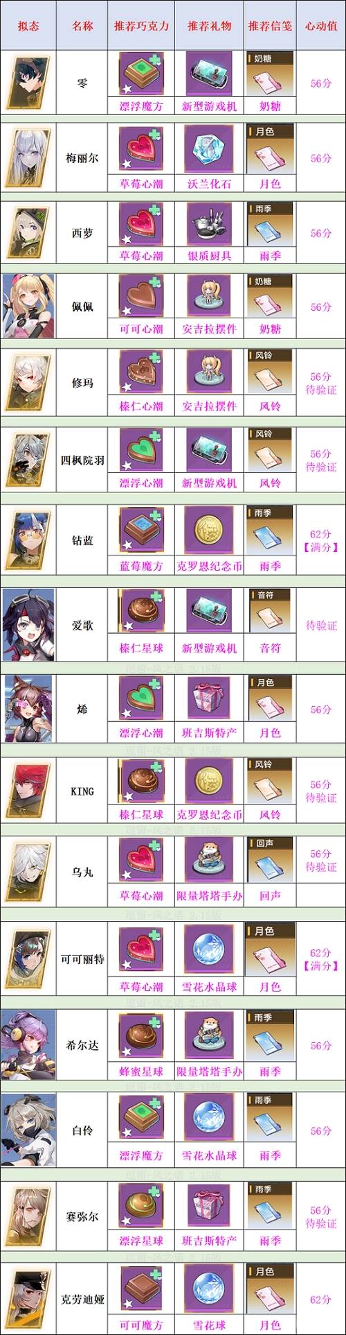 每天5点刷新,每日可以赠送情人节礼物-三种(巧克力、礼物、信笺),根据拟态喜爱的程度不同,可以获得不同的心动值累计一定心动值,就可以领取奖励啦。