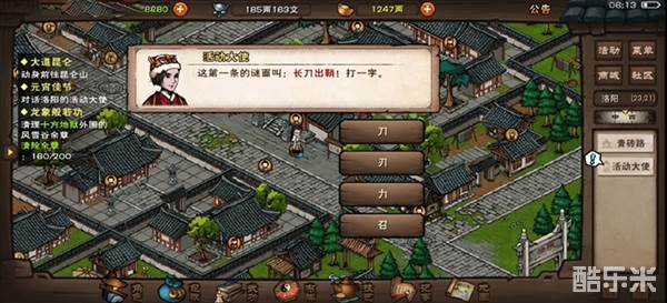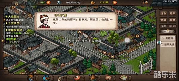 在洛阳城中带有感叹号的屋子里面可以找到活动大师,和活动大使对话,在答题框中输入正确的答案即可。