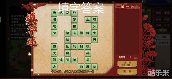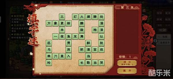 《烟雨江湖》元宵大师灯谜答案 填字谜答案