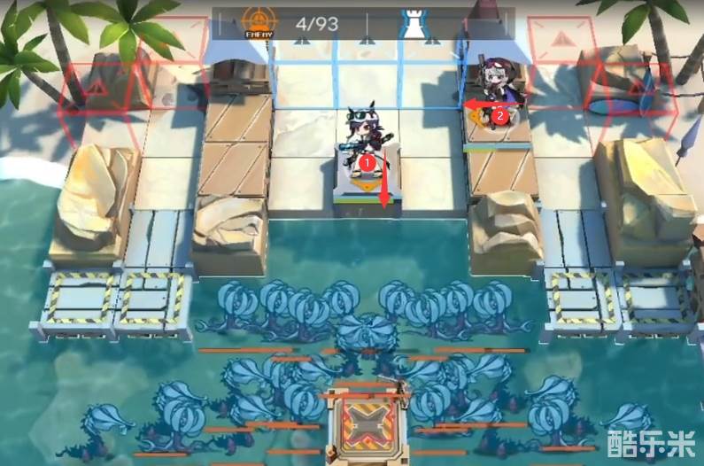 攻击范围扩大,攻击力+70%,攻击造成两次伤害,对攻击范围内的所有敌人应用特性加成,每次攻击在范围内生成持续5秒的粘液,地面敌人经过时移动速度-40%、防御力-200(不叠加)