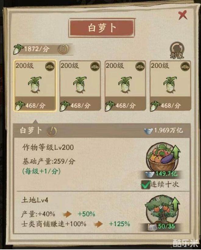 产物产量可以提升商铺卷,门客卷,知己卷。