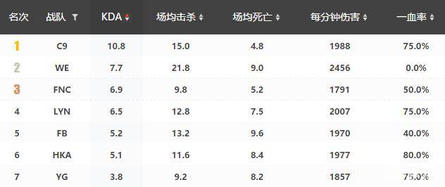 从数据来看,YG在入围赛的十二支队伍中是进攻最为积极且极容易在初期取得优势的队伍,这一点从他们高达75%的一血率就足以佐证,这样一个数据在所有队伍中排名第四。也由于他们热衷于前期的进攻和小规模团战,他们队伍仅有3.8的KDA,这侧面反映了团战和大量初期的交火更容易产生失误和阵亡。