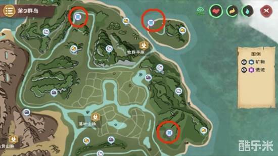1、打开大地图,可以看到地图上有一些标记着蓝色格子图标的地点,这里就是遗迹点
