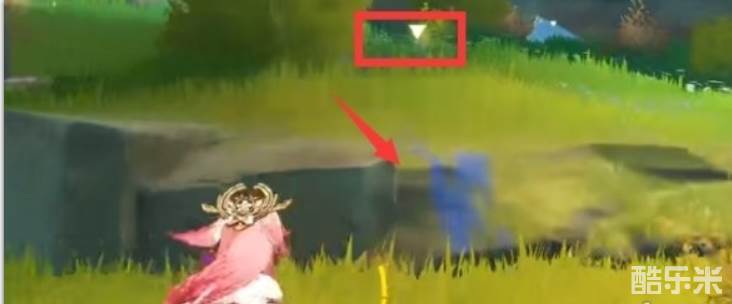 2、到达箭头所指的位置区域,地图中会有闪动的白色三角箭头。