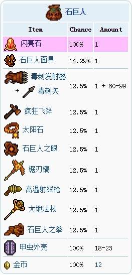 玩家们在扫荡神庙的途中会遇到一堆箱子,箱子里面都会一种动力电池或者叫太阳魔核的东西。除了箱子里,打败神庙里游荡的怪物也会有0.5%的几率掉落动力电池。我们拿着这东西到神庙尽头的大房间里,找到一个像香炉上面还有雪花状的光环的物品。呃,这个就是那个所谓的神庙祭坛了,然后把我们手里的动力电池放到香炉(祭坛)里,石巨人便会掉下来了。