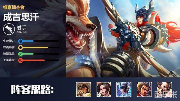 成吉思汗可以作为打野和射手位登场,他的单体输出十分强力并且非常灵活,操作起来的趣味度很高,缺点是没有位移和强控,比较适合喜欢带动比赛节奏的玩家选择。