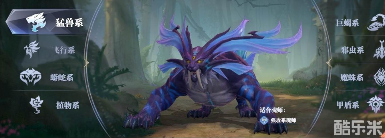 猎魂森林全天开放,包含着多个森林区域,每个森林区域都含有8种类型的魂兽,有[猛兽系]、[飞行系]、[蟒蛇系]、[植物系]、[巨蝎系]、[邪虫系]、[魔蛛系]、[甲盾系]这8类。