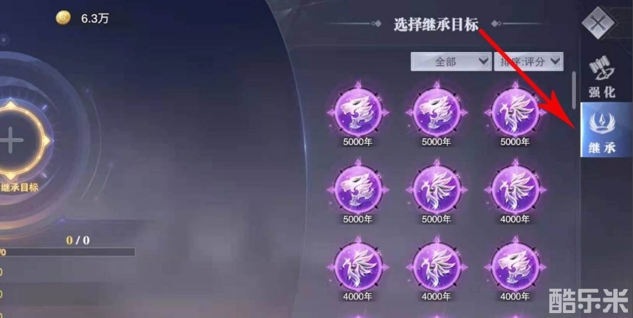 4、在养成界面的右侧最下一个栏便是魂师继承,点击继承即可。