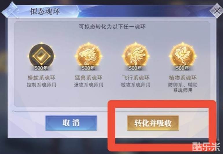 当遇到同年限的魂环后,玩家可以根据系统的推荐,又或者是自己的喜好,来选择魂环的吸收以及被吸收的关系。