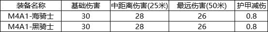 小结:海骑士的伤害随距离衰减程度和黑骑士一样,也是同大多数英雄级M4A1一样。
