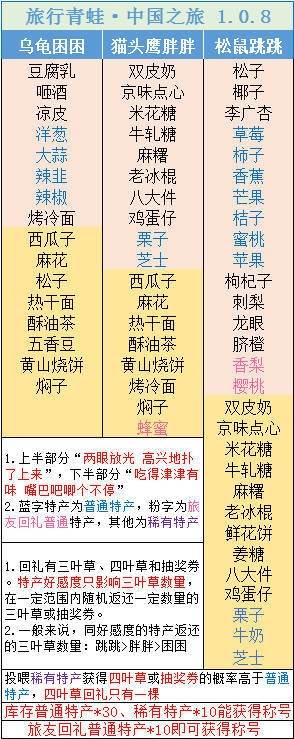 以上就是《旅行青蛙:中国之旅》小伙伴口味偏好一览