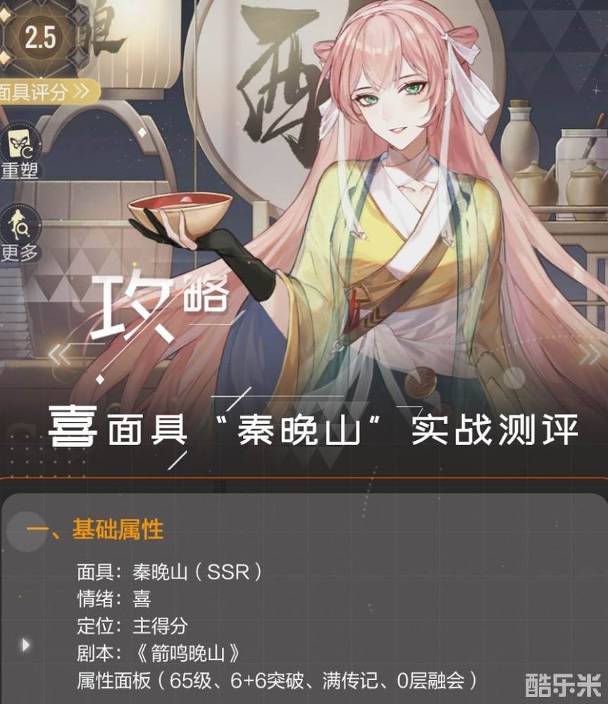 为一个喜情绪的主得分面具,风头基本都被宋祈抢完了,导致很多玩家对这个面具一点都不了解,今天组组就来为大家分析一下秦晚山,看她是否值得姐妹们培养
