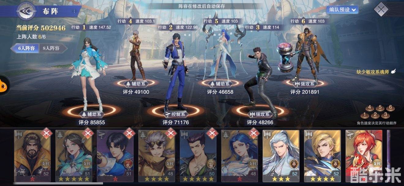 这套阵容火舞可以给马红俊增伤使其打出更高伤害,奥斯卡用来回魂,宁荣荣与白沉香和御风负责拉动行动条并且挂增益buff来实现马红俊更高的输出。