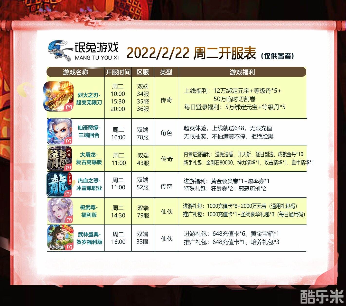 | 大屠龙-复古高爆版 | 屠龙43区( 苹果- 安卓) | 2022-02-22 11:00:00 |