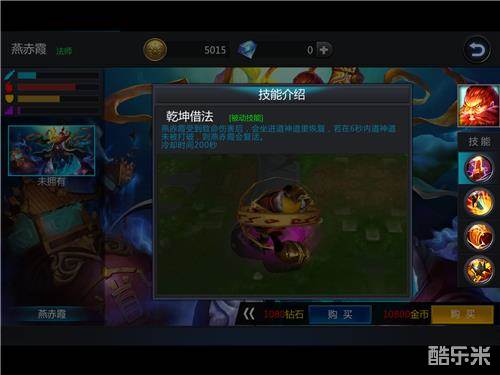 【乾坤借法】被动技。燕赤霞受到致命伤害后,会坐进道神道里恢复,若在6秒内道神道未被打破,则燕赤霞会复活。这个技能是燕赤霞生存力的保障,注意控制好200秒内置CD。