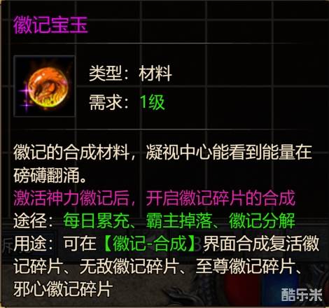 而关于徽记碎片的合成,最重要的材料就是“徽记宝玉”了。就当前版本而言,最便捷的途径就是充值或BOSS掉落这两个途径,玩家在充值时可以免费领取到“徽记宝盒”,打开后就能随机获得徽记宝玉或其他徽记碎片 。当然,多余的已激活的徽记图鉴和碎片可以拿来进行分解,分解后同样也能够获得数量不菲的徽记宝玉哦!