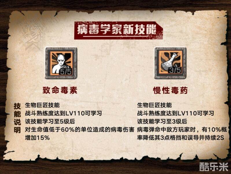 病毒学家的特点是技能可以造成较高的aoe伤害,在迅速清理大范围怪物时有着很优先的表现,这次推出的两个技能主要给病毒学家提升了buff能力。
