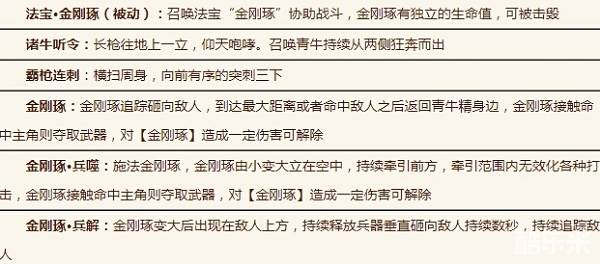 3.BOSS拥有1被动:法宝 · 金刚琢,与4技能:霸枪连刺、金刚琢、金刚琢 · 兵噬、金刚琢 · 兵解。