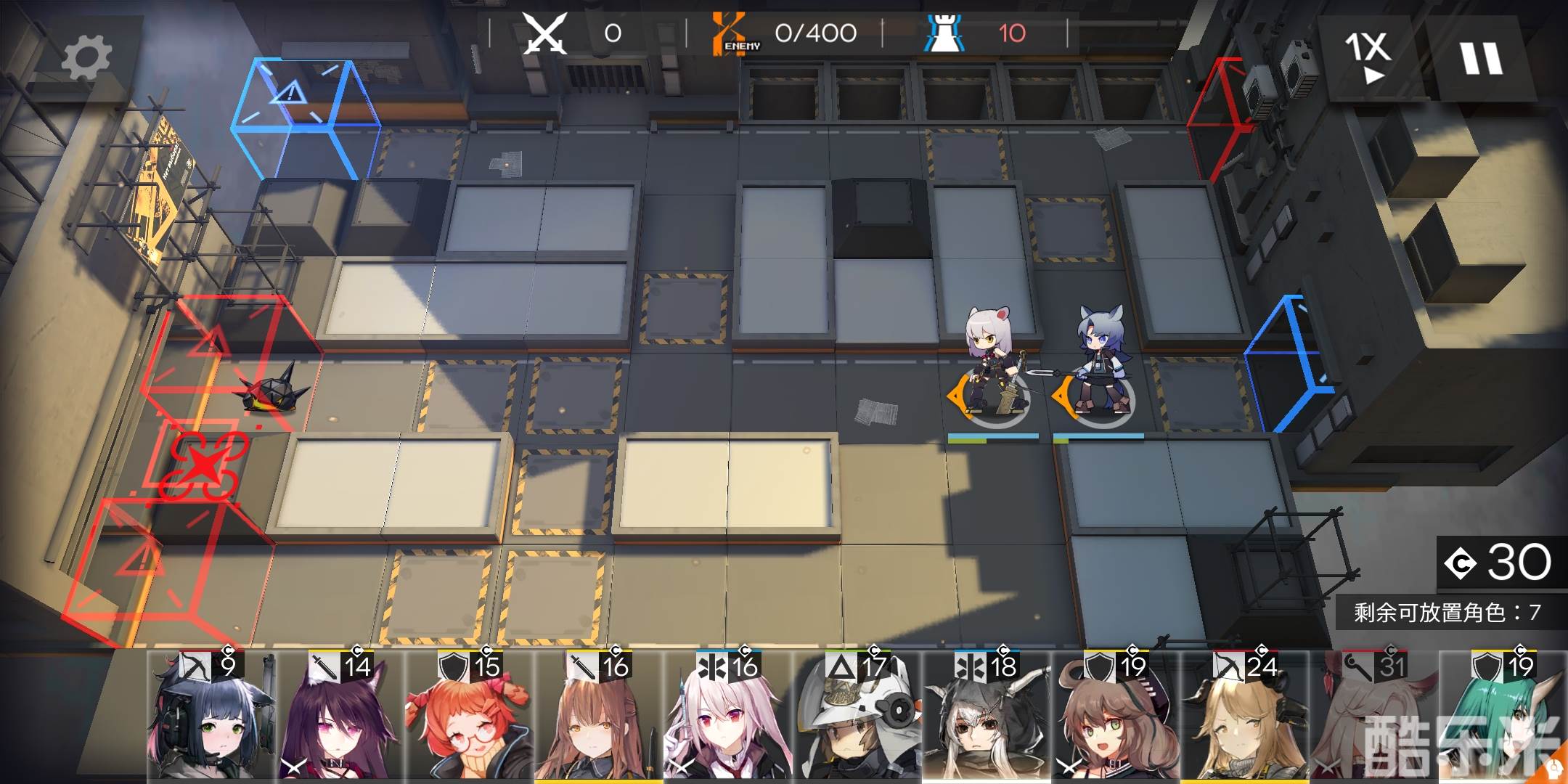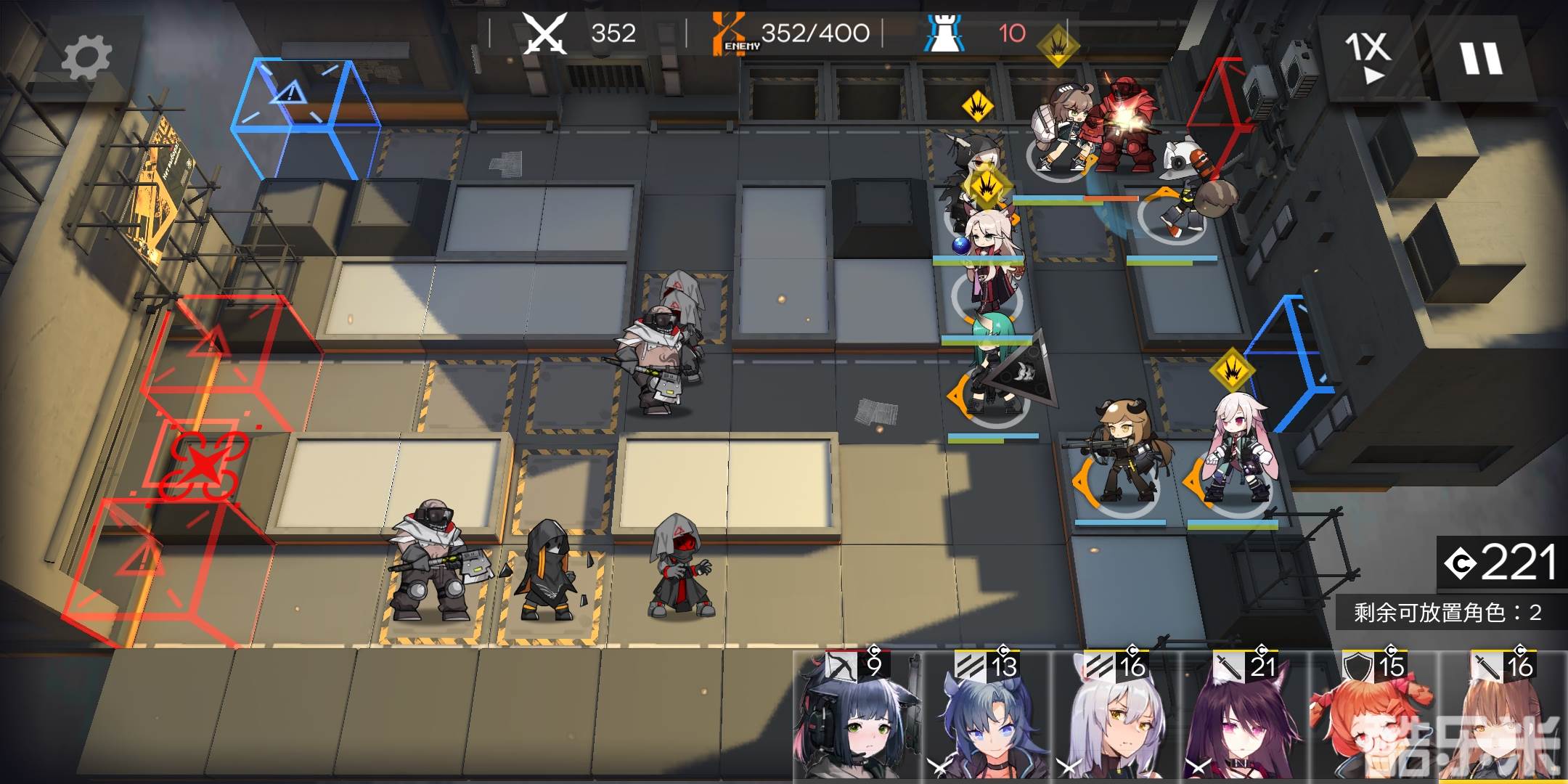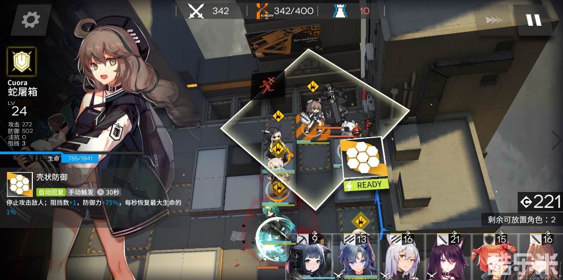 有练度的盾、近卫、狙击、法师都可以塞进来,推荐有1-2名近卫,非常好用,用来分担主力队的压力,和处理倒数第二波左上角那里漏的几只怪。