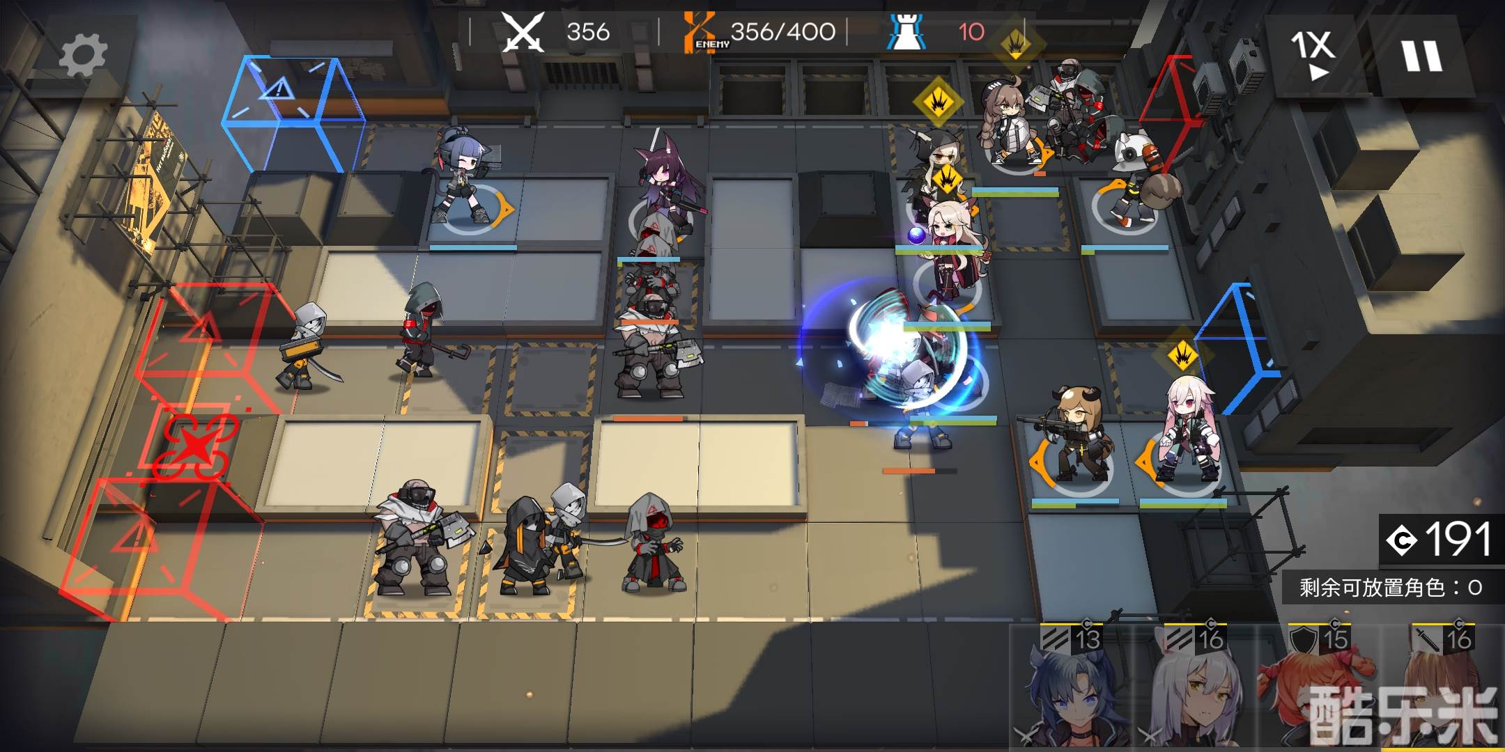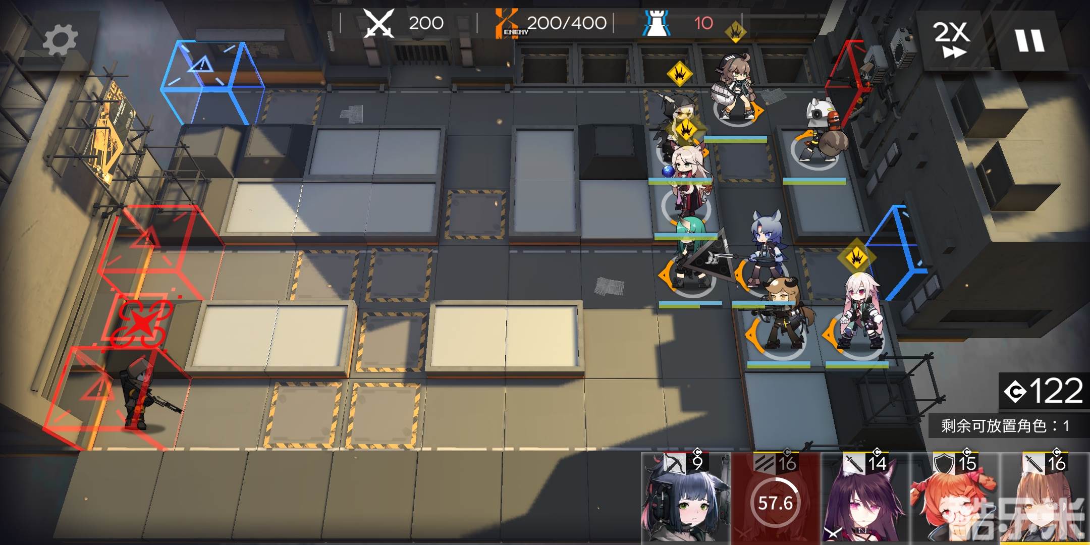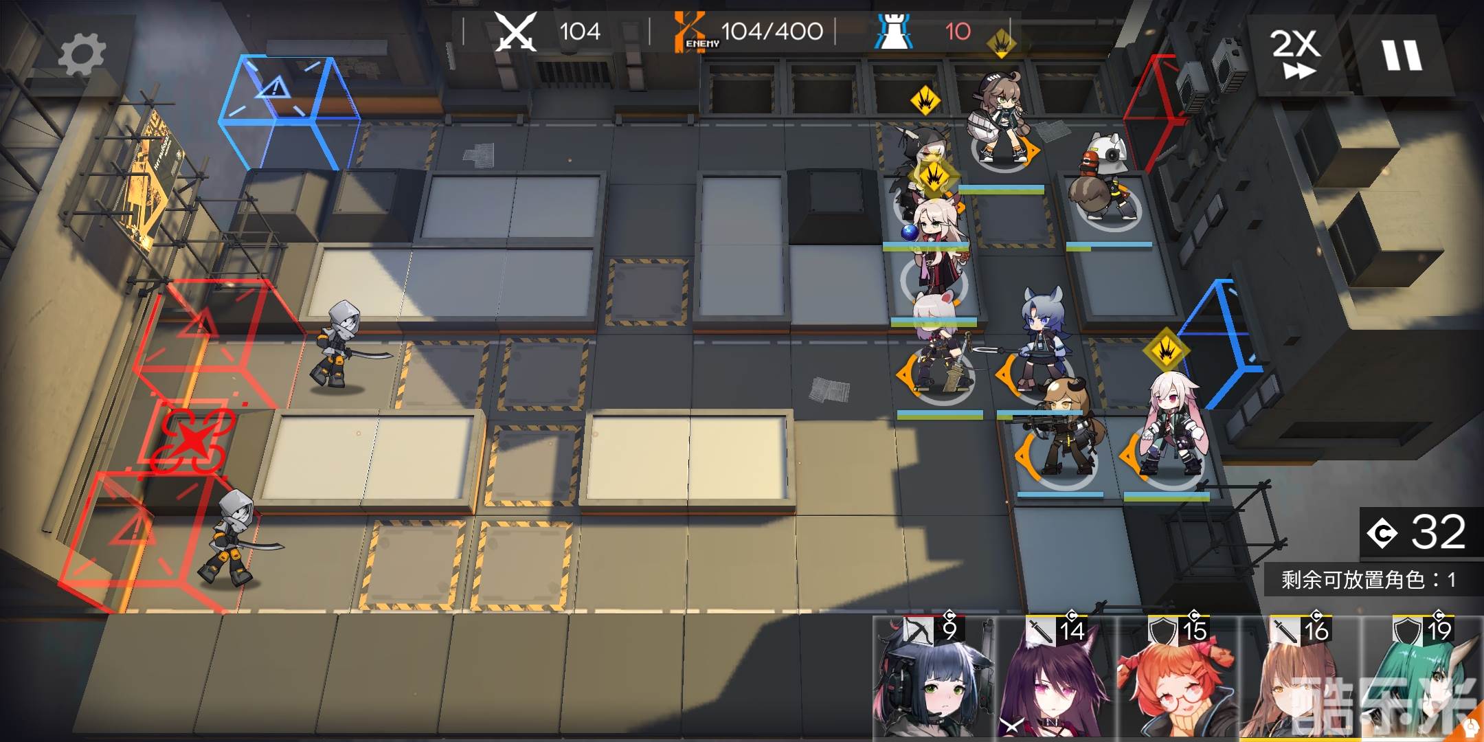 有练度的盾、近卫、狙击、法师都可以塞进来,推荐有1-2名近卫,非常好用,用来分担主力队的压力,和处理倒数第二波左上角那里漏的几只怪。