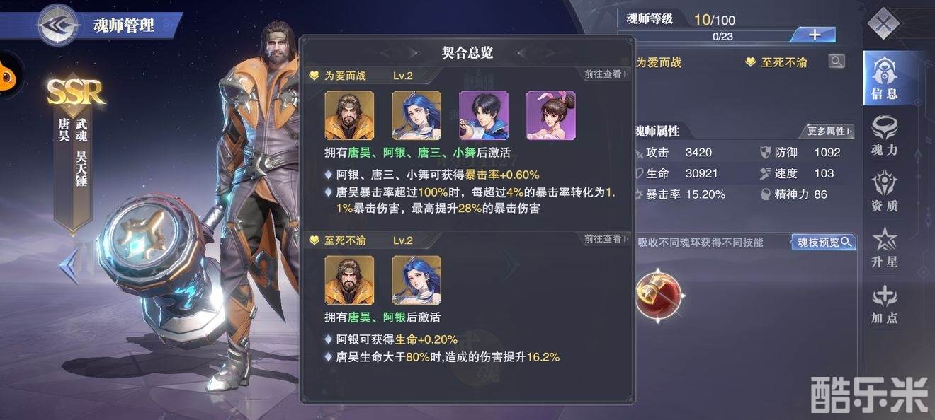 魂力充足,保证魂技释放,多buff加成,主c爆发更高,副本活动刷伤害表现极佳。