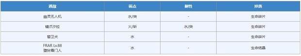 在本地图内的宝箱可获得攻击系和生命系碎片、结晶,击败FEAR可获得“变质矿石”。BOSS前宝箱小概率可获得生命硬珠(约6%)、咏梦之书(约1%)。