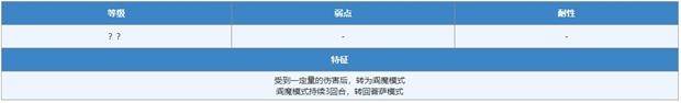 收到一定量伤害后,BOSS将转为阎魔模式,并进行石化、封印等异常状态攻击。队伍中一定要配置驱散技能,并且给驱散角色装备抗性徽章。