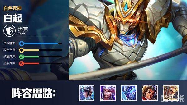 主要特点:这套阵容的控制能力很充足,只要白起先手控制住敌方英雄,队友可以快速跟进输出与控制,保证能够击杀目标,另外白起也可以为其他英雄创造良好的输出环境。