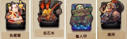 路人甲(石头人):前期神卡,一个小的,1~5个大的。2个小路人甲共计300块钱 + 4级公孙瓒可以直接打过1~4波完全不漏。彪科技利器。配合投石车简直逆天。