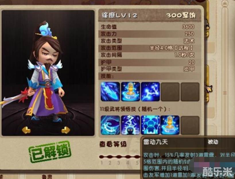 2、雷动九天:普攻15%概率群攻,评价:SS,群攻神技。