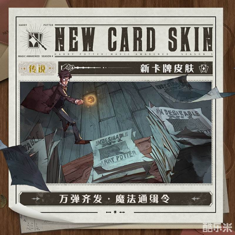 情急之下,哈利挥动了他的魔杖,让桌上的一摞摞通缉令瞬间飞起。在纷飞纸张的掩护下,他们得以逃脱。(同学们可通过「通行证礼盒」获得全新卡牌皮肤「万弹齐发 · 魔法通缉令」。)