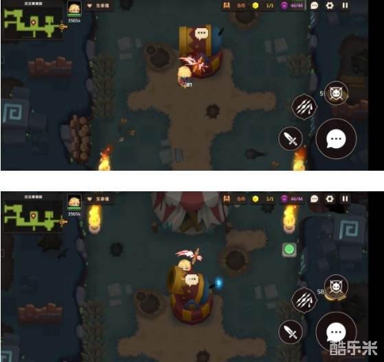(1)上面黄碎片位置炮口向右,发射来到图示位置,打碎木桶即可获取