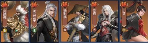 杨影枫(力量、忽略抗性);完颜亮(攻击、暴击伤害);龙五公子(力量、精准);小艾(全系抗性、暴击伤害);冷启(吸血、生命、火系抗性);