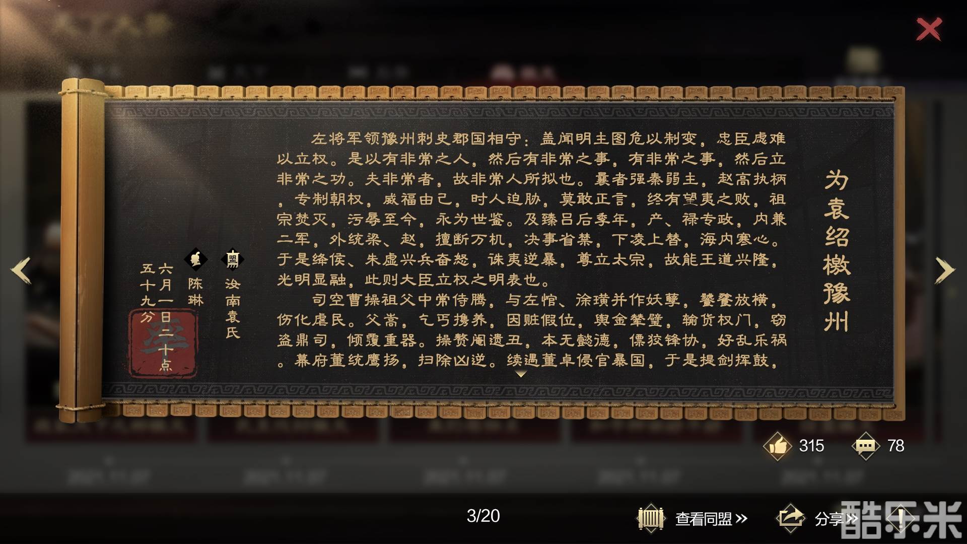 在《率土之滨》,檄文是群雄逐鹿时一块没有硝烟的战场。有无数笔力深厚的主公在此挥毫泼墨,上演文采的对抗,留下诸多在率土世界奉为经典的檄文。