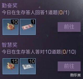 1、每天参与答题可以获得10集训奖牌和生存答人答题券,每天累计答对10道题还能获得智慧奖哦。