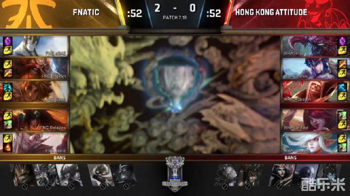 比赛进入FNC赛点局,FNC拿到了一套中前期节奏阵容,而HKA是需要发育的后期阵容。