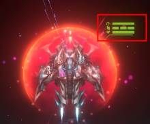 这里进入战斗时,战舰右上方3个绿条显示的就是战舰的护盾耐久量,装甲耐久量(左右后)以及舰体耐久量(战舰血量)