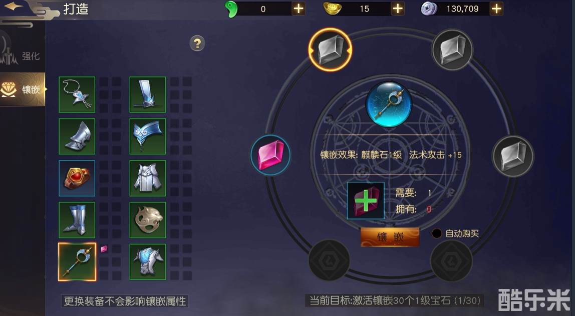 2.已经镶嵌低级宝石,可通过宝石升级升级到高级,消耗等价值低