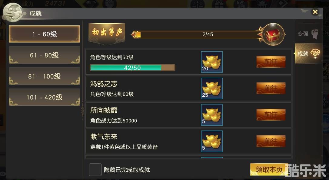 成就任务非常多,几乎每个成就达成都会奖励元宝,可以尽量去完成这些任务获得元宝