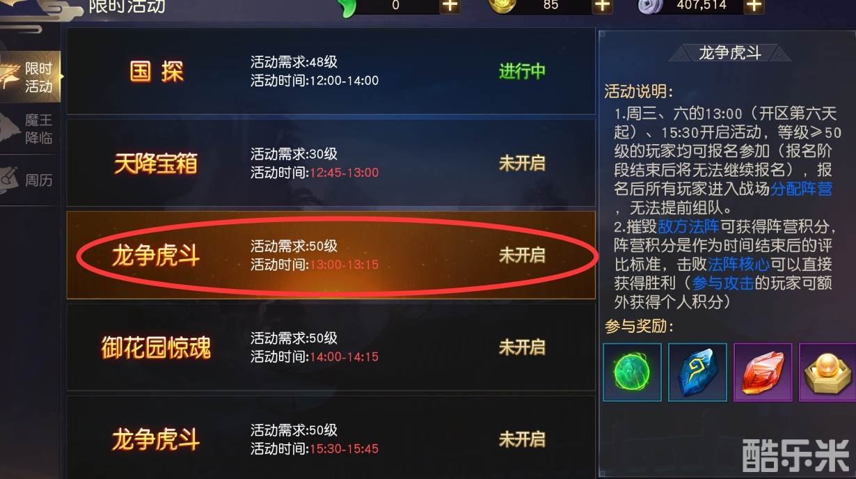 5.当报名人数太少,将无法开启龙 争虎斗。