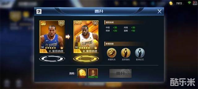 晋升后的莱昂纳德更加全面,中投、内线属性+30,传球属性+20,篮板属性+50,技能上,关键先生、后仰强化升至10级,肌肉记忆升至7级,晋升后的莱昂纳德,在进攻能力上有极大的提升。