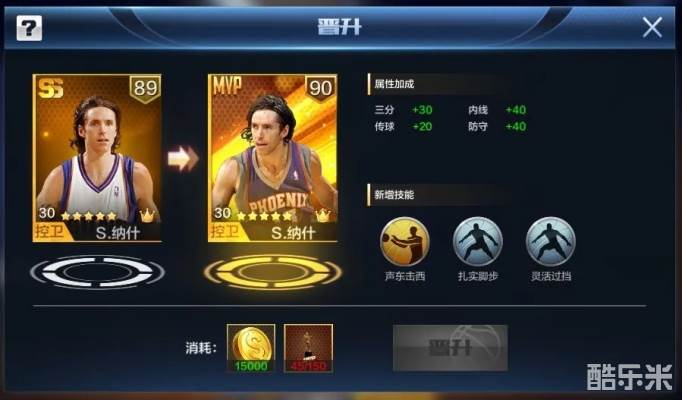 晋升MVP后,06纳什的三分+30、内线+40、传球+20、防守+40,技能声东击西升为10级,扎实脚步升为7级,灵活过挡升为7级,在进攻、防守、助攻能力上获得了大幅提升。
