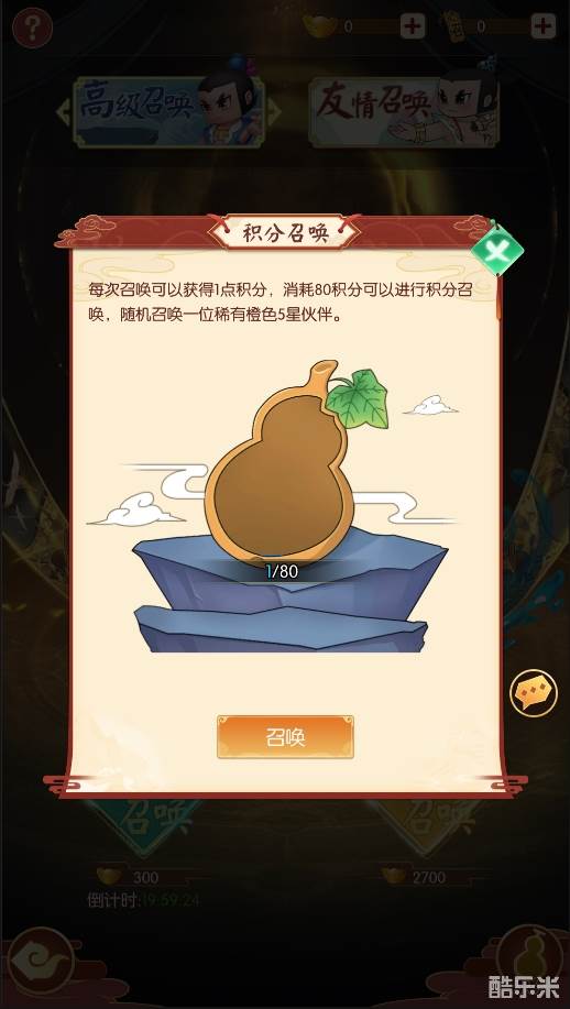 高级召唤所消耗的是元宝或幻世绘卷(抽卡券),成功召唤到伙伴后,可获得一定数量的召唤积分。友情召唤所消耗的是友情点,友情点可通过庄园内的拜访好友等玩法来积累。