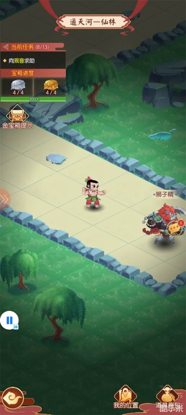 进入仙林,打赢狮驼王就能获得一个金宝箱。