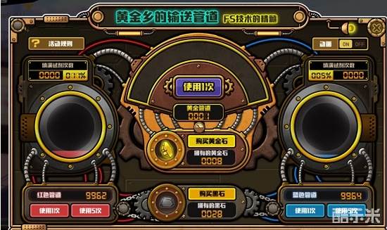 FSer使用“黑石”往红色管道和蓝色管道里输入相应颜色试剂,可获得各种道具。管道里输入的试剂达到100%时“填满试剂次数”增加1次。红色管道和蓝色管道填满试剂次数都是1次以上时填满试剂次数各减少1次并获得一个“黄金管道”。在拥有“黄金管道”的情况下使用黄金石可以激活黄金管道并获得更高级的道具。