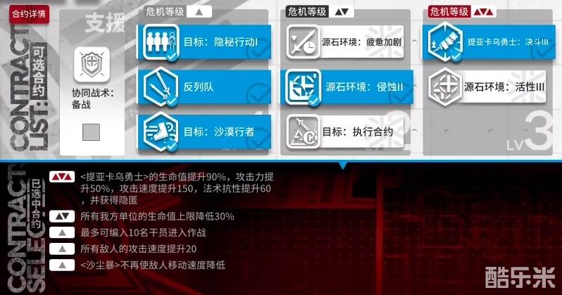 危机合约对练度要求比较高,基本及时是低配作业也会至少是单核的,考虑到大家的Box不同,这里仅分享合约选择和可替换的干员思路。