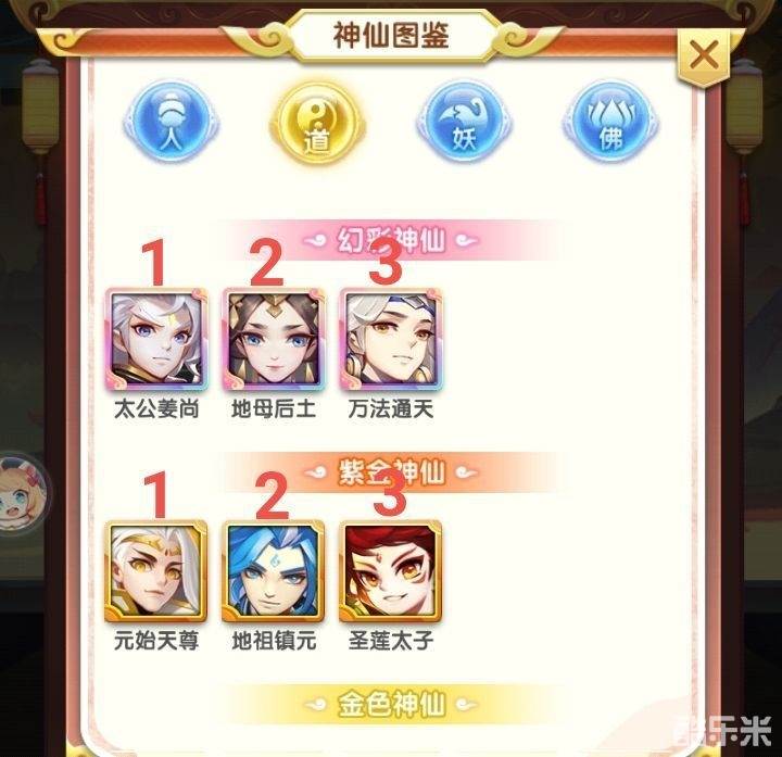 打开游戏首页右下角更多→天地通鉴→神仙图鉴,排在左边第1位的紫金神仙就是紫金1,第2位的就是紫金2,第3位的就是紫金3