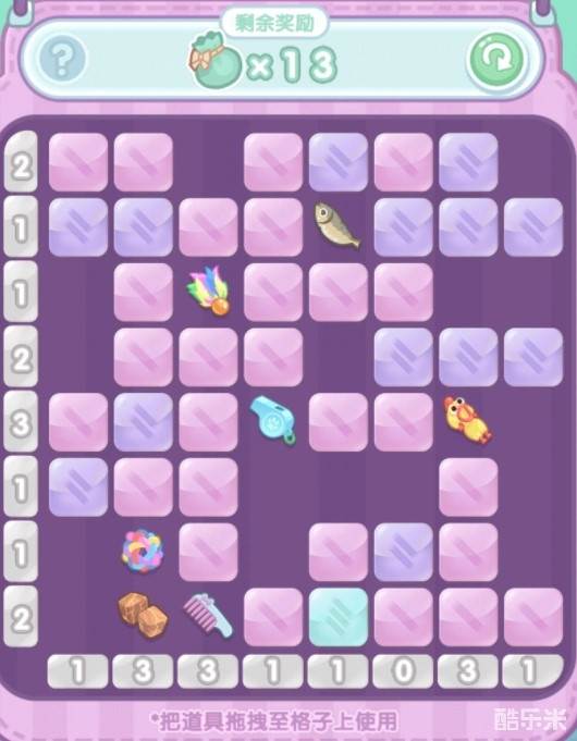 2、比较节省道具的稍微计算一下就可以算出来具体哪个位置有道具,用下面的小锤子敲击相应位置即可翻开获得道具。